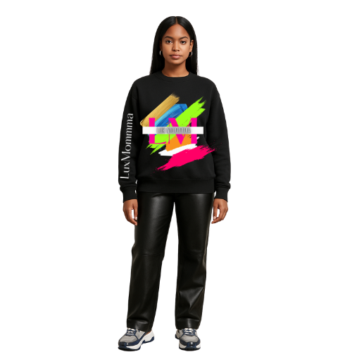 Elevate your streetwear with this LuxMommma Signature Brushstroke Hoodie — where bold artistry meets luxe comfort. Designed on premium black cotton, the sweatshirt features striking neon brushstrokes in electric blue, vivid lime, radiant gold, and hot pink, creating a vibrant, fashion-forward statement piece.